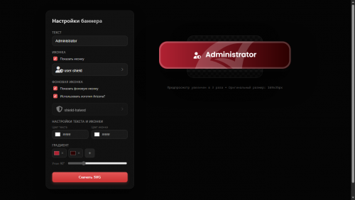 Был разработан минимальный сайт на react благодаря которому вы можете создать баннер со своей иконкой (Font Awesome 6) и текстом. Расположение конечно стоит доработать, но то что сделано уже подойдет многим. Принцип простой - Вам требуется написать текст, отображаемый в баннере, выбрать иконку слева от текста и иконку на задний фон (замена логотипу Arizona), а также настроить градиент под себя. Используется оригинальный размер для баннера 169x35, как у ArizonaRP.